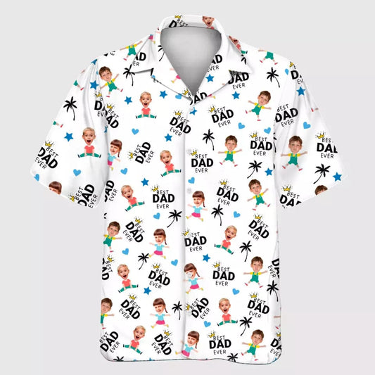 Personalized Custom Hawaiian Shirt For Fathers With Images Of Your Kids - Unisex Tropical Best Dad Ever Hawaiian Shirt For Father's Day - Summer Gifts