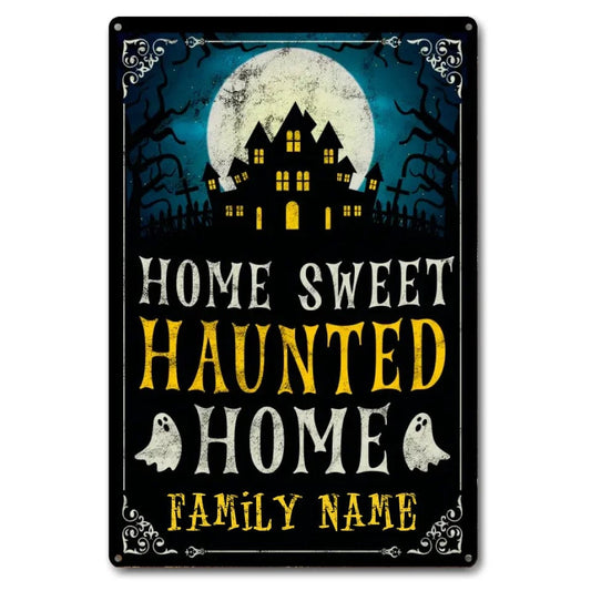 Custom "Haunted Home" Metal Sign | Personalized Halloween Family Name Decor for Indoor & Outdoor Use