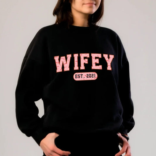 Personalized Retro Halloween Wifey Sweatshirt | Custom Couple's Matching Cozy Sweater | Anniversary Keepsake