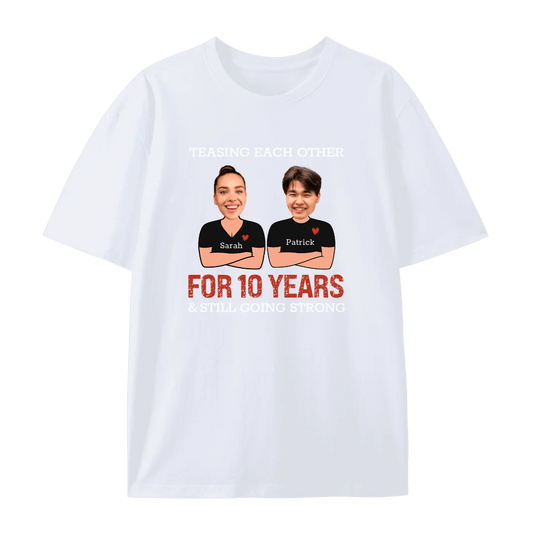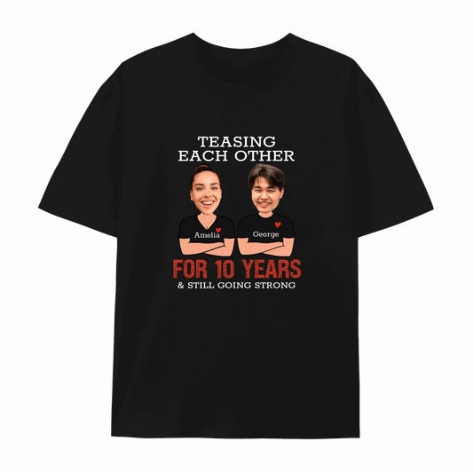 Custom Teasing Each Other For Years And Still Going Strong Matching Anniversary T-Shirt for Couple With Face